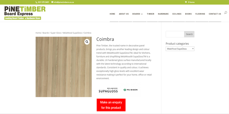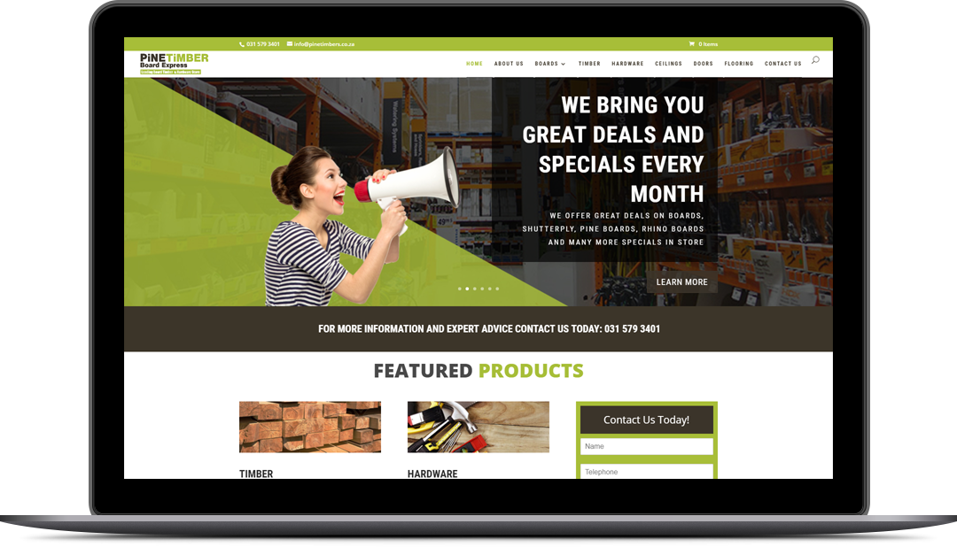 PINE Timber Board Express boasts a proud 100-year legacy – and its history is steeped in that of Durban. I was very proud to develop their website. The website boasts over 150 pages, with a product quote system. We are generating over 15000 visitors with Google Adwords, many of those leads become customers through the quote system. User especially enjoy upload their cutting list to Pine Timbers Board Express.